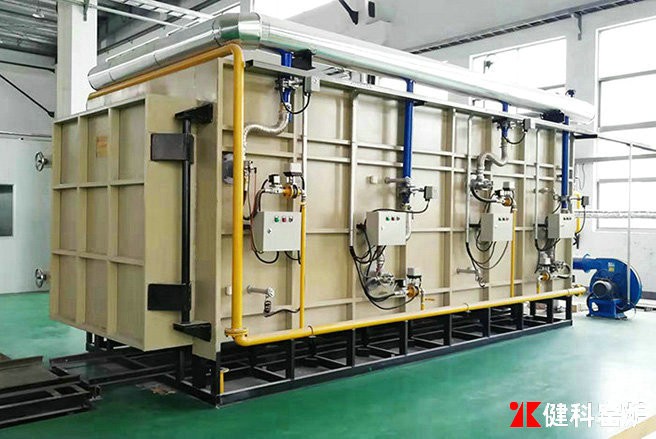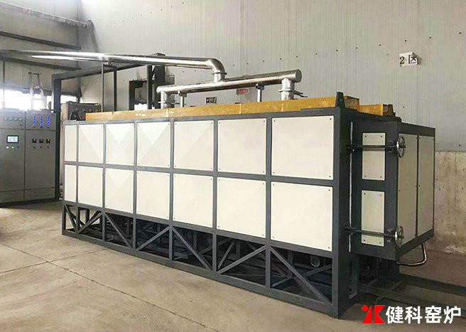 由于窯門經(jīng)常移動,所以窯門的砌筑為兩層,內(nèi)層為高強度隔熱磚,外層為隔熱層,采用耐火纖維氈貼于窯門金屬殼上。燒嘴安裝在窯墻上,視窯的高度設(shè)一排或兩排。以窯車臺面為窯底并和窯頂、窯墻構(gòu)成窯的燒成空間,窯車襯磚中 心留設(shè)主煙道,與地下煙道相接。窯的一端(或兩端)設(shè)有窯門,窯門可單獨設(shè)置也可砌筑在窯車端部。窯車兩側(cè)裙板插入窯墻砂封槽內(nèi),窯車與窯車之間,窯車與端墻、窯門之間設(shè)有曲封槽,耐火纖維擠緊,起密封作用。在窯墻砂封槽下部留有許多通風孔,有利于窯車底部散熱,延長了窯車的使用壽命。